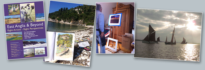 I participated in the 'East Anglia and Beyond' Exhibition in Bury St Edmunds, Sea Pictures Gallery's 'EAGMA 35th Anniversary Exhibition' in Clare and also the EAGMA ' Boats at Bayfield' show in August - again sadly disrupted by the weather - I did move to Norfolk on the understanding this was England's driest County! Holidays and celebrations of my 'significant' birthday slowed down painting progress somewhat - but some new work was actually completed, and is included in the New and Available section. Lots of sketches and reference gathering, from Corfu and also The Barge Race at Brightlingsea with fellow EAGMA colleagues, will provide inspiration for new work this Autumn. Thanks also to Trunch and Mundesley Art Groups for inviting me to hold demonstrations which I enjoyed immensely. |